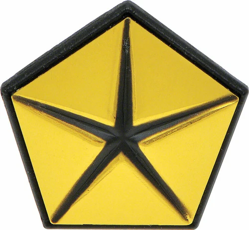 New reproduction Pentastar emblem. These were used from 1963-1972 on all Dodge, Chrysler, and Plymouths. Some of the early Pentastars were metal but Chrysler switched to the plastic ones around 1967, these are the plastic variety and have a pin on the back that attaches them to the fender.